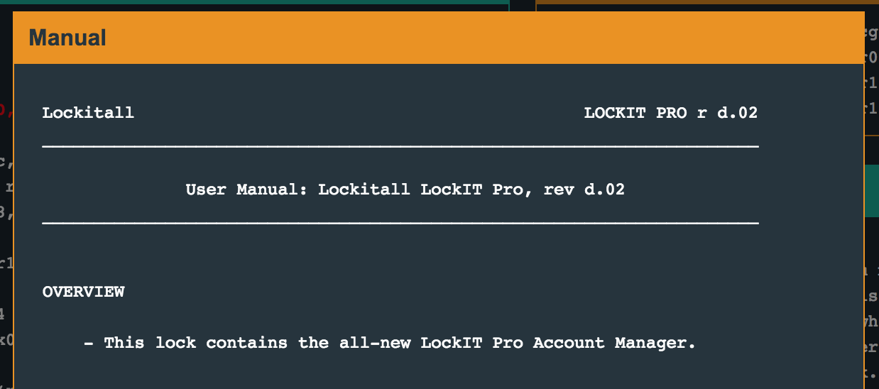 I tried guessing a few usernames and PINs and got nowhere. After stepping through the code a bit, and re-reading the release notes, I realized that’s because the lock does not have any usernames configured when we get it.